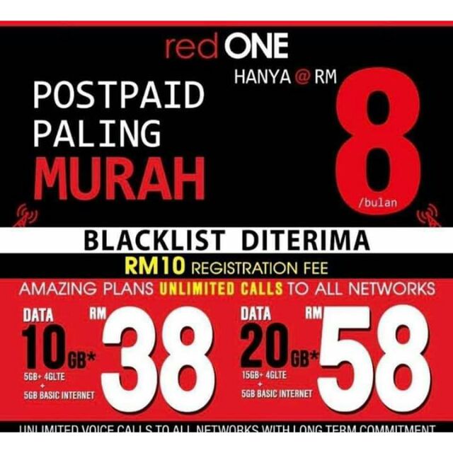 Related : Redone Plan Rm38 : ░ bulanan hanya rm 38 ░ pendaftaran hanya rm 10 ░ percuma panggilan tanpa had (unlimited) ke semua rangkaian ░ 15gb redvideo (youtube, iflix, astro on the go dll.) sebanyak 500mb setiap hari ░ 10gb redsocial (whatsapp, line, fb dll.) ░ percuma..
