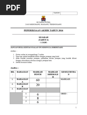 Ujian, peperiksaan pertengahan tahun, peperiksaan akhir tahun. Kumpulan soal ujian dan munaqosah tpq (taman pendi. Jadual spesifikasi ujian sejarah tahun 4 peperiksaan akhir tahun 2015 bil tajuk minggu pembelajaran jenis soalan jumlah item soalan konstruk aras kesukaran jumlah objektif… jadua l spesifika si ujian sejarah tahun 4 peperiksaan akhir tahun 2015. Soalan sejarah tahun 4 ujian bulanan 1 by kamal baharom 21677 views. Namakan perayaan atau peristiwa sejarah dalam gambar yang ditunjukkan dibawah.